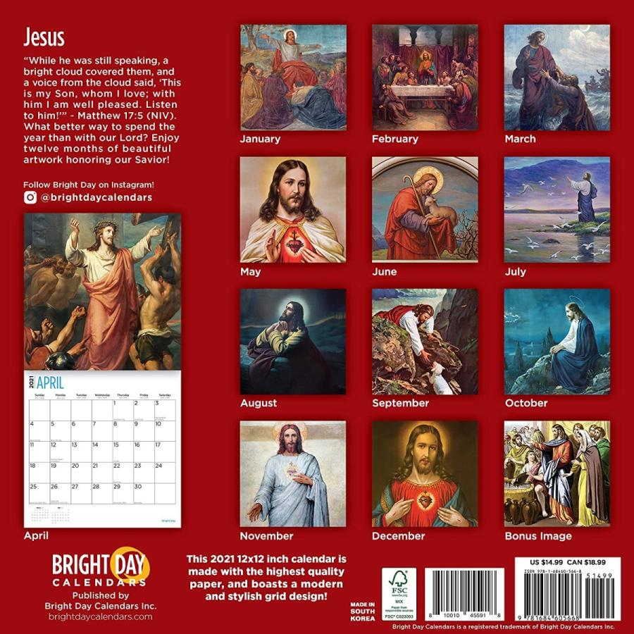 bright day calendars 2021イエスウォールカレンダー 12 x 12インチ キリスト教宗教神聖書