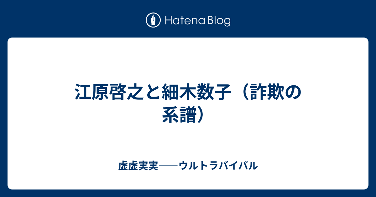 江原啓之と細木数子 詐欺の系譜 虚虚実実 ウルトラバイバル