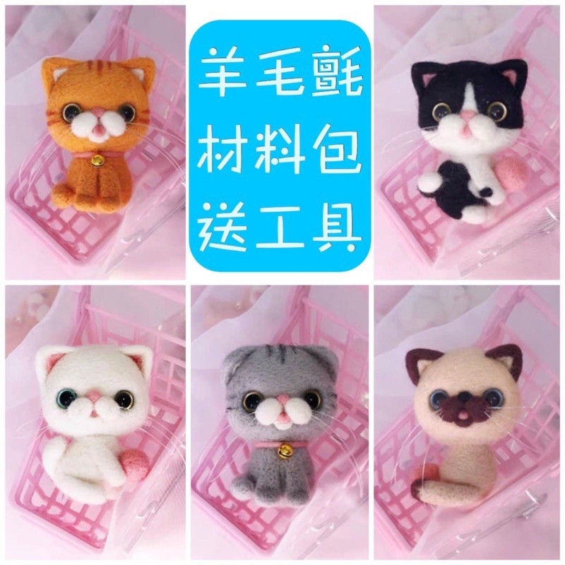 現貨 貓貓散步趣 7 5擬真眼睛 羊毛氈材料包 繁體教學 麥手創 羊毛氈
