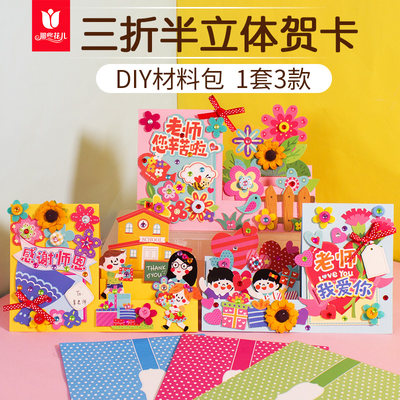 教师节贺卡手工diy制作材料包幼儿园儿童感恩送老师礼物毕业卡片 虎窝淘