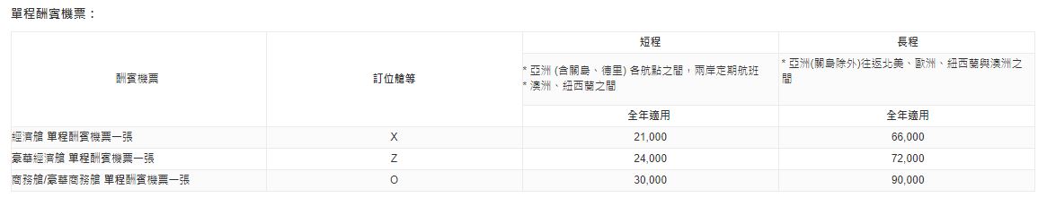 酬賓兌換哩程 中華航空公司