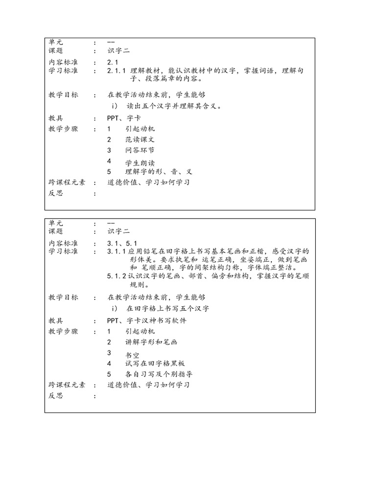 初級讀寫課教學設計