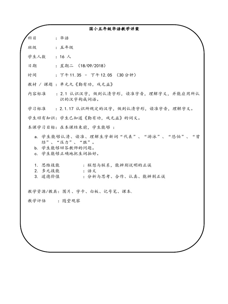 m10 半个小时五年级的详案 勤有功 戏无益 syamira