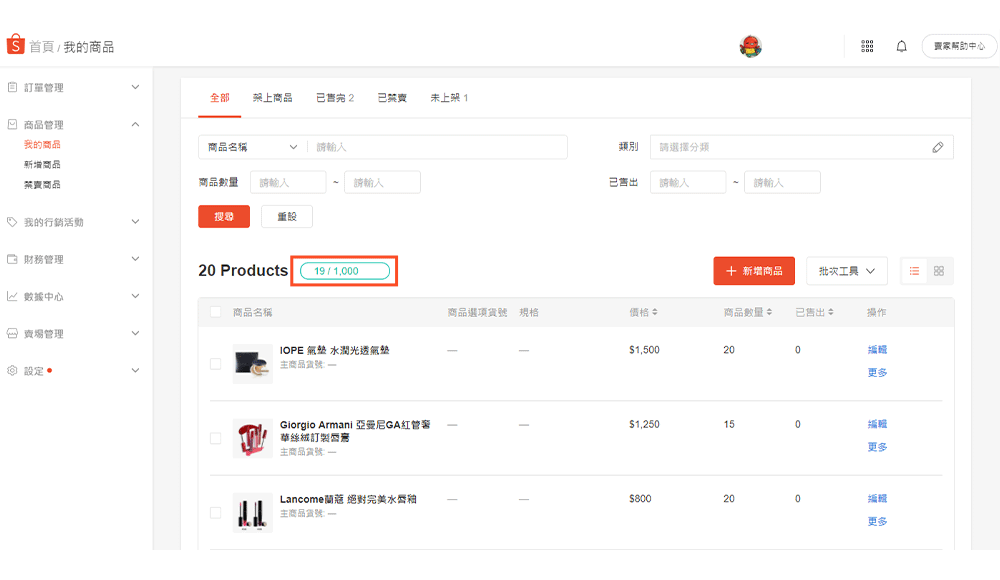 商品管理功能 蝦皮購物賣家教學中心