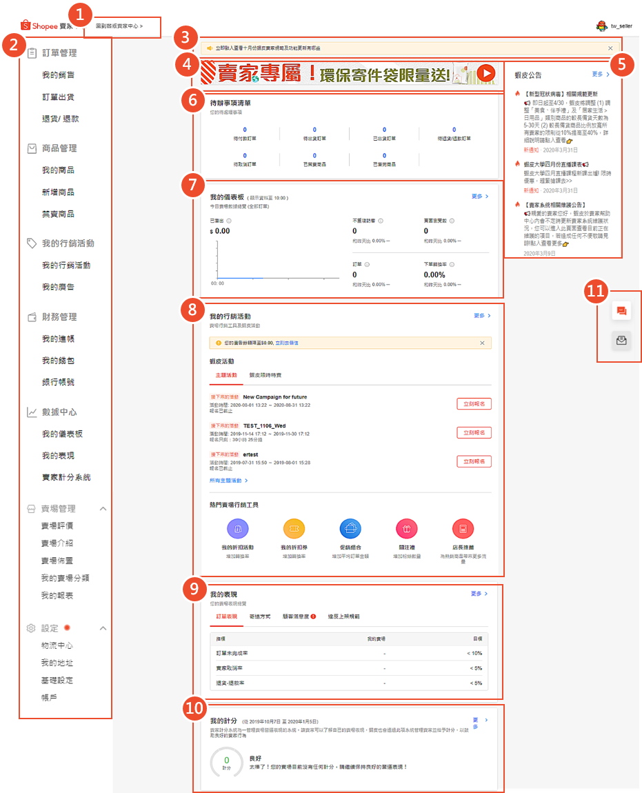 賣家中心首頁介紹 蝦皮購物賣家教學中心