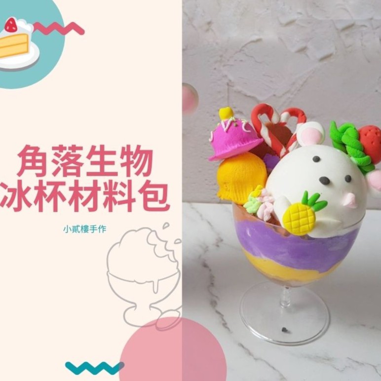 小貳樓手作 輕黏土材料包 白熊角落生物冰杯