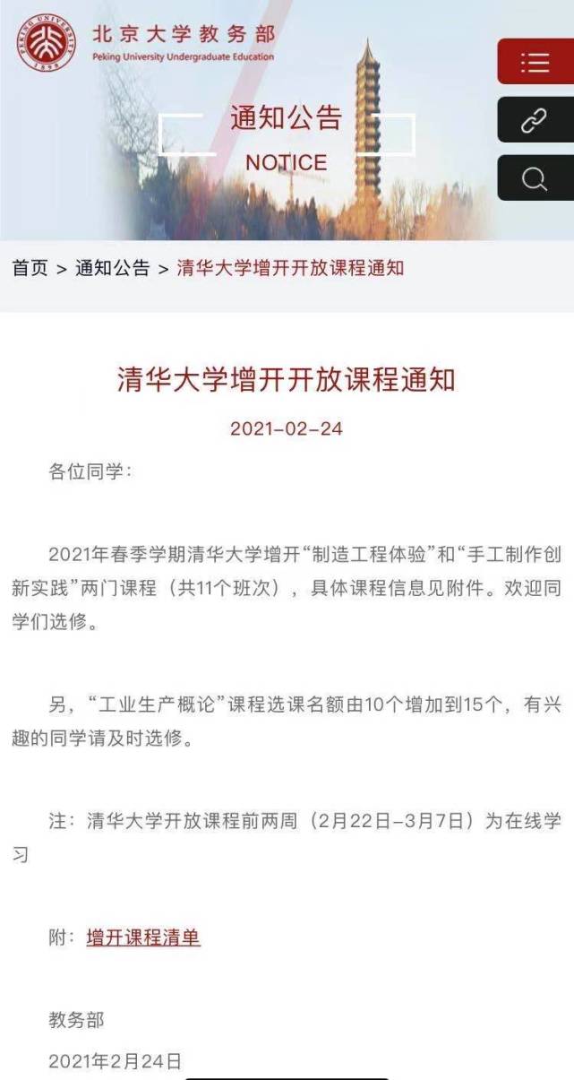 清华和北大 可以同时上了 课程