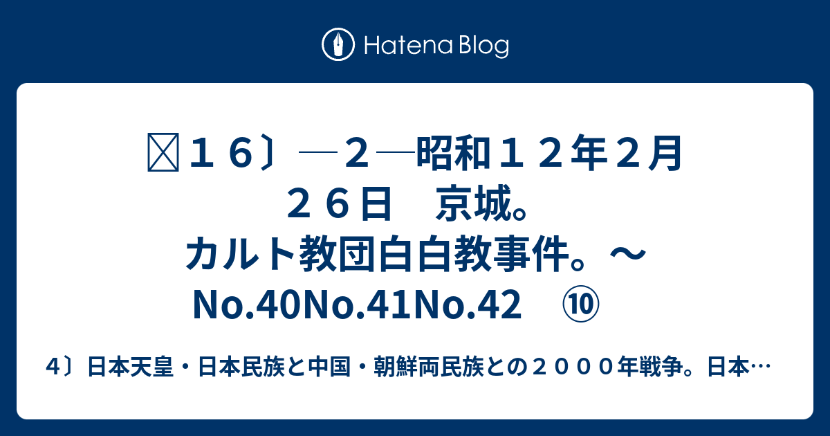 16 2 昭和12年2月26日 京城 カルト教団白白教事件 no 40no 41no 42 4 弱者 敗北者 逃亡者の日本天皇 日本民族と強者 勝者 追放者の中国 朝鮮両民族との2000年戦争