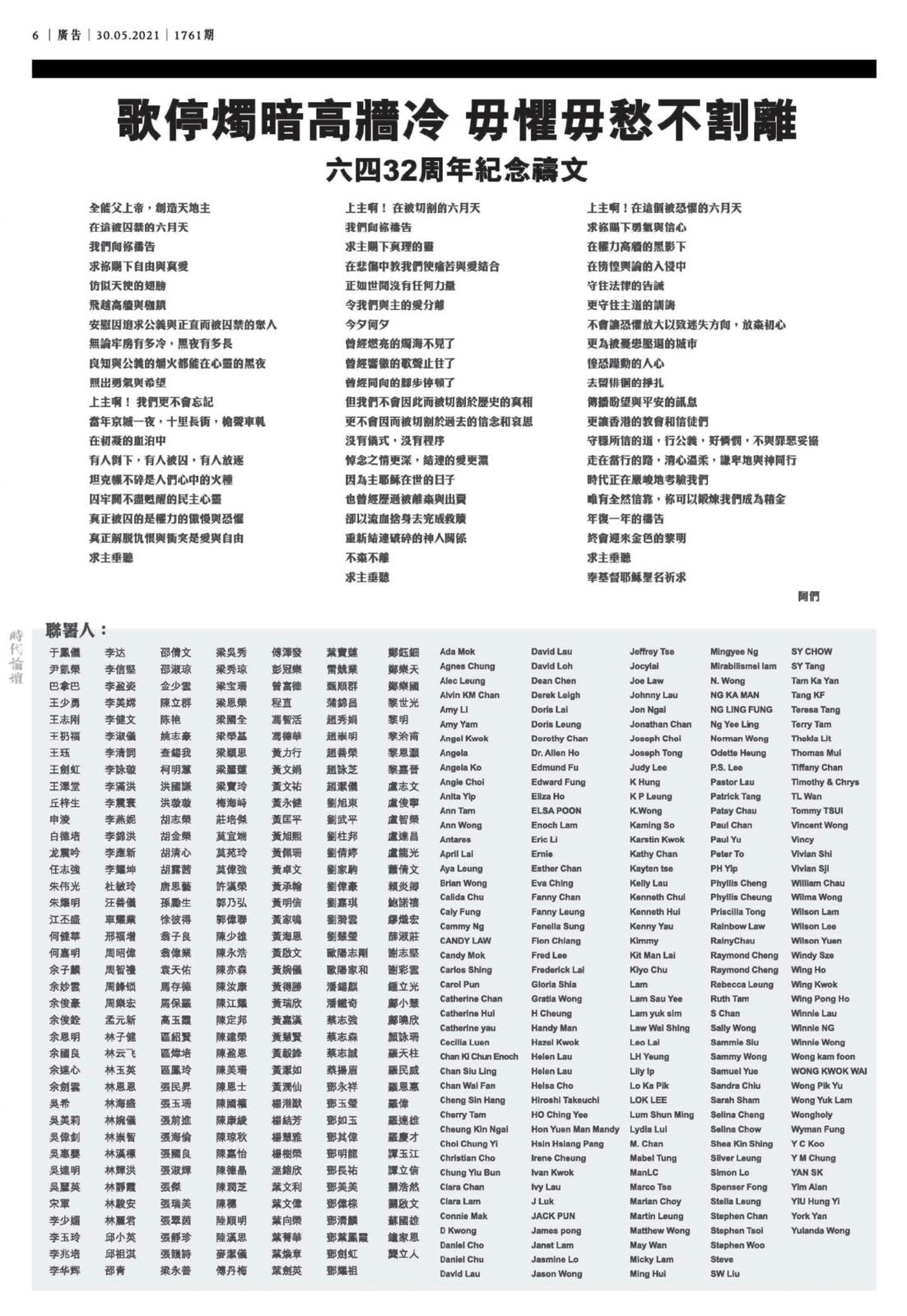 香港基督徒回應國安法聯署聲明 獨媒轉載 獨立媒體