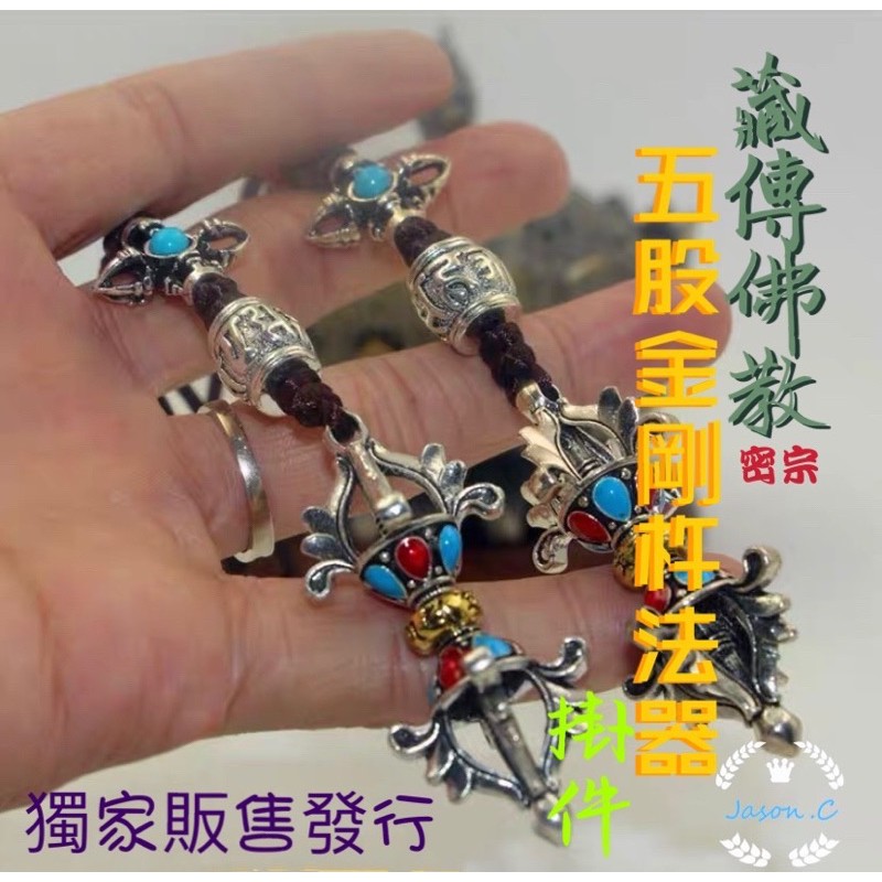 藏傳佛教五股金剛杵法器墜飾掛件隨贈亞麻荷蓮文玩香囊袋乙個 現貨免等