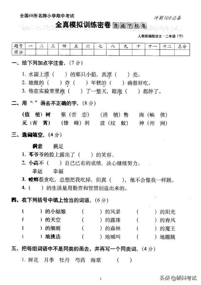 免费下载部编本人教版二年级下册语文第二单元试卷练习检测 课件站