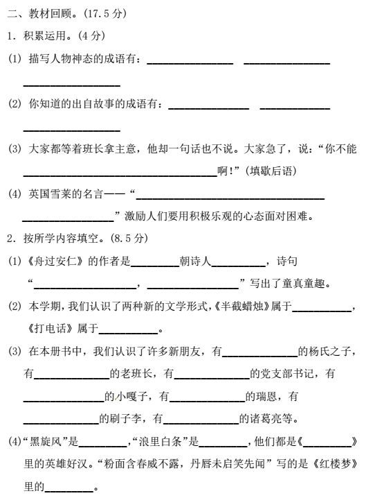 二年级语文下册第四单元测试卷 跟我学语文
