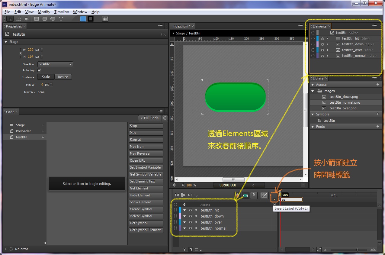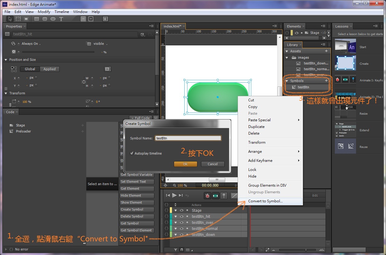 教學 edge animate 的按鈕三態實戰 an tutorial 0001 chodaict