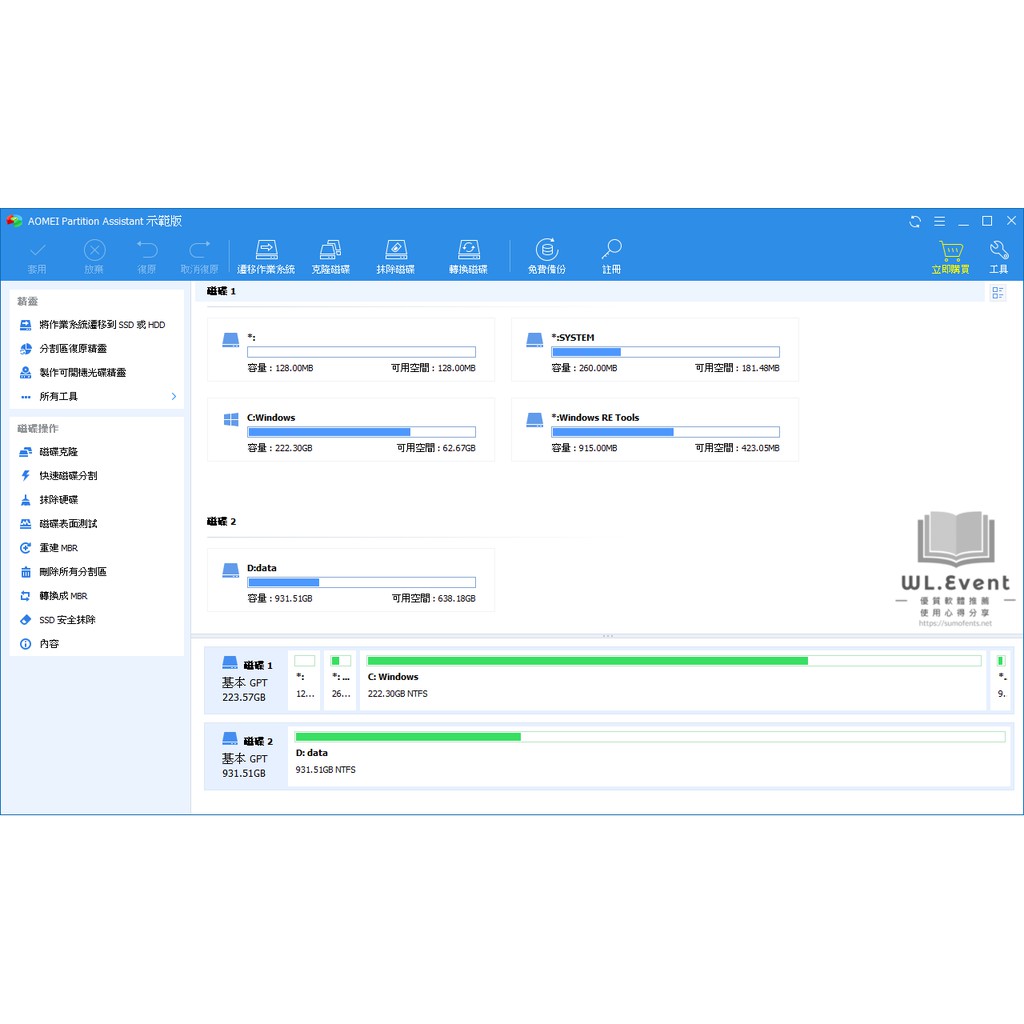 aomei partition assistant 免費磁碟分區管理軟體 輕鬆調整 合併 分割硬碟磁