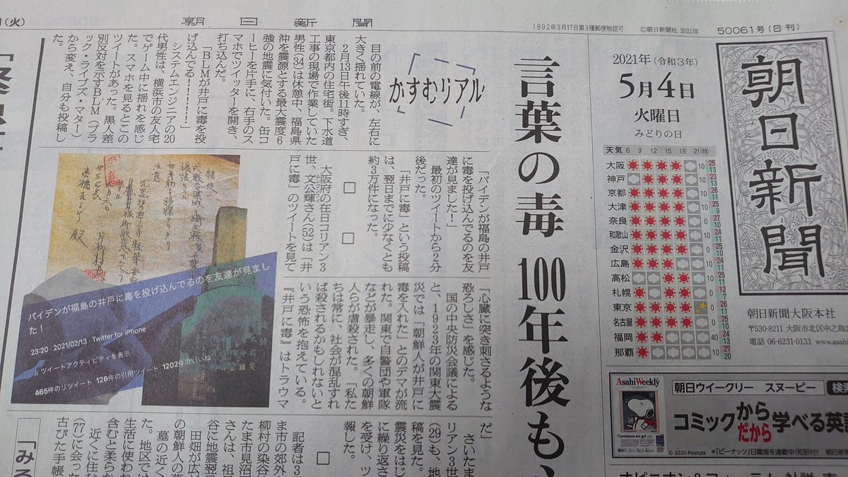 朝日新聞 井戸に毒 ツイート記事 取材の裏側 at教団兵さん togetter
