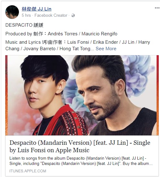 金曲歌王林俊傑將合作推出洗腦神曲 despacito 中文版 台灣英文新聞 2018 01 25 19 27 00