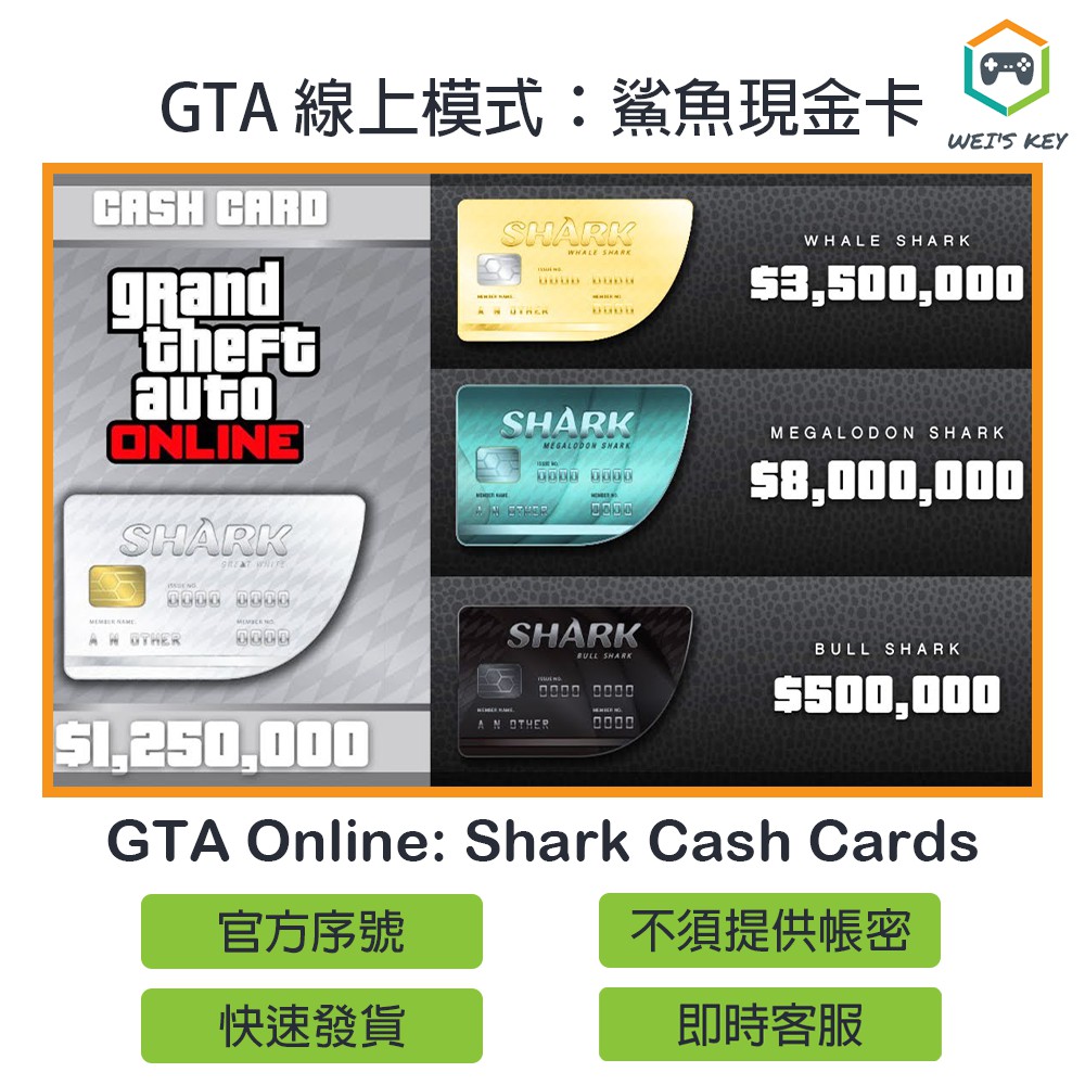 俠盜獵車手5鯊魚卡金幣卡125萬 線上模式 steam pc gta5 gtav grand theft auto v