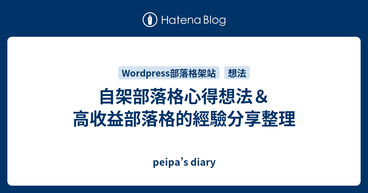 自架部落格心得想法 高收益部落格的經驗分享整理 peipa s diary