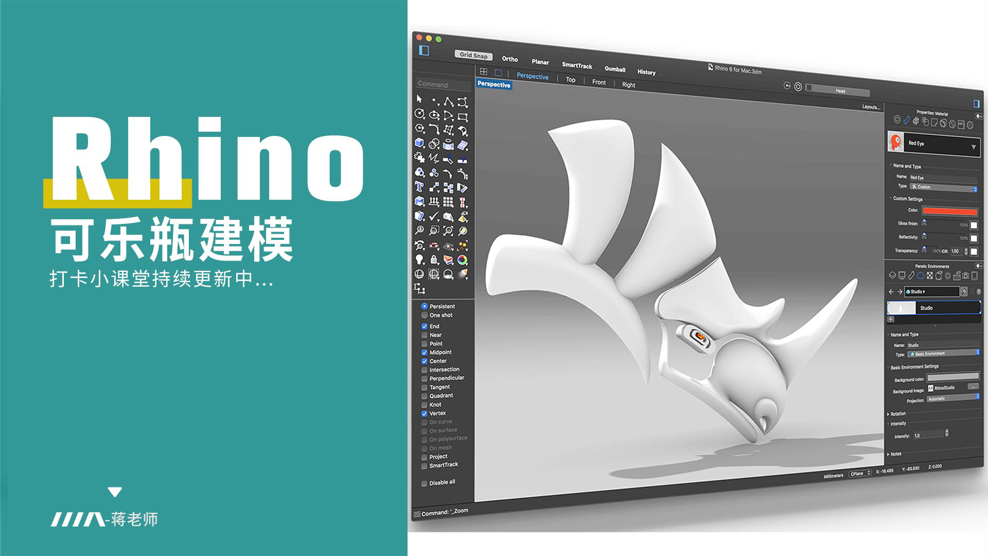 rhino犀牛软件2018基础入门教学工业产品设计建模自学视频教程 平面设计美工 jiaocheng13 com