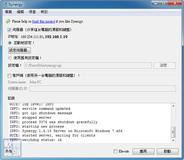 synergy 一組鍵鼠同時控制多台電腦 系統 tk s塵囂觀測
