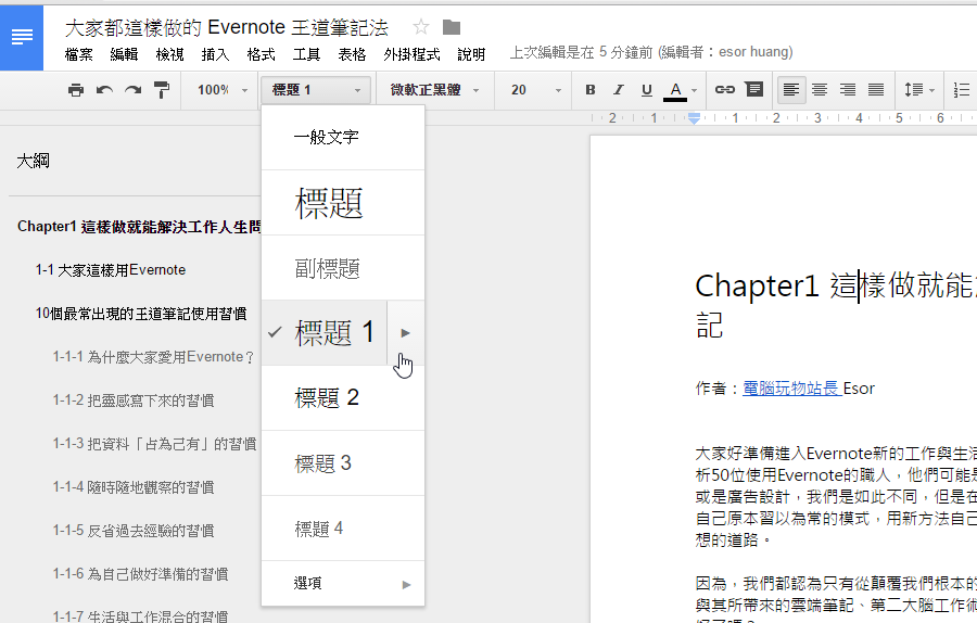 論文報告必備 google docs 新增文件大綱引導模式