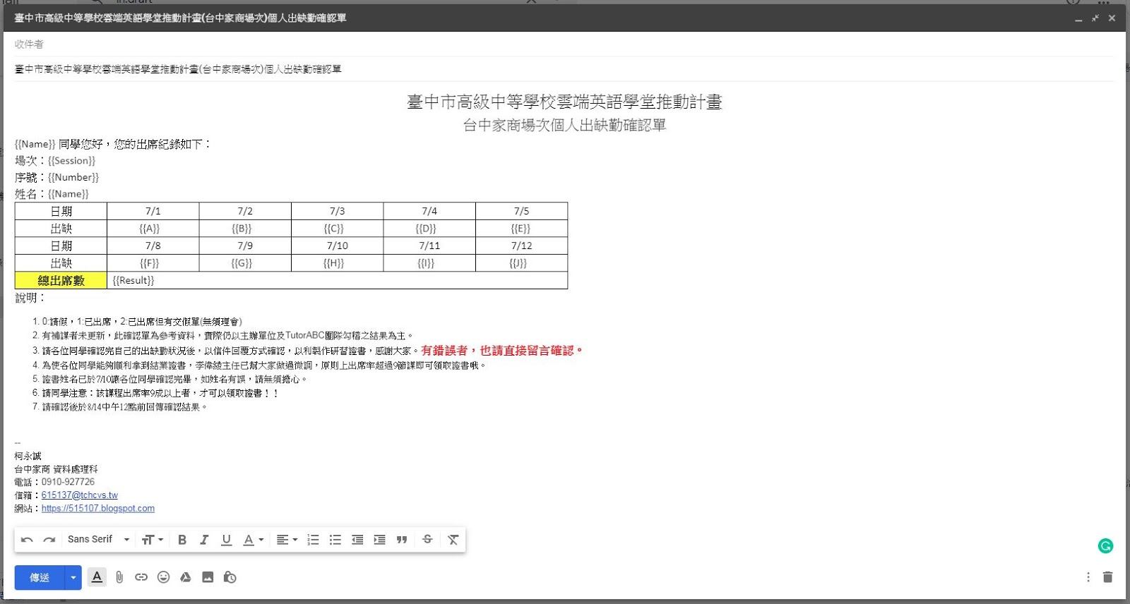 小柯 tchcvs 如何利用gmail做到合併列印及批次寄送個人化郵件功能